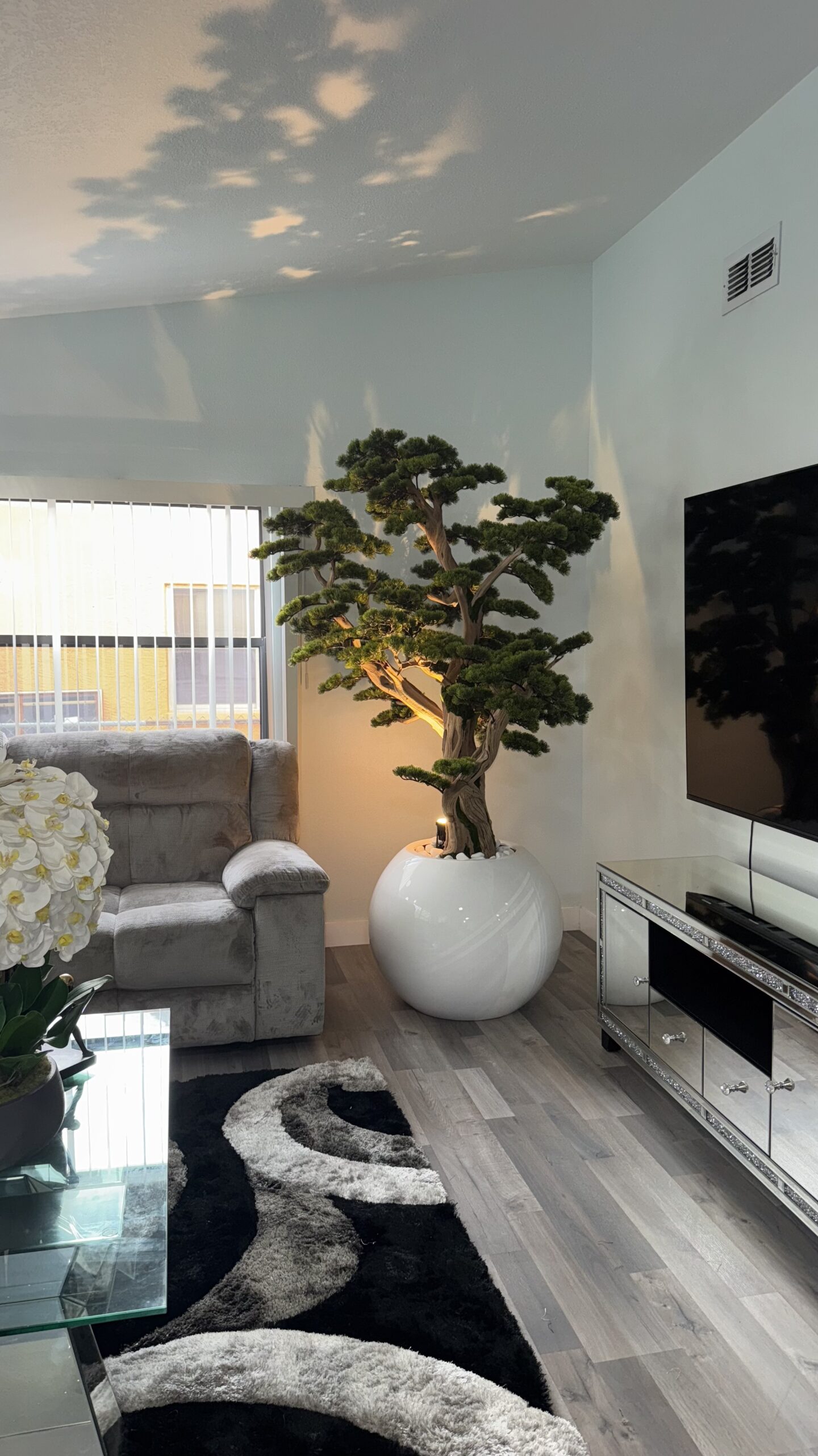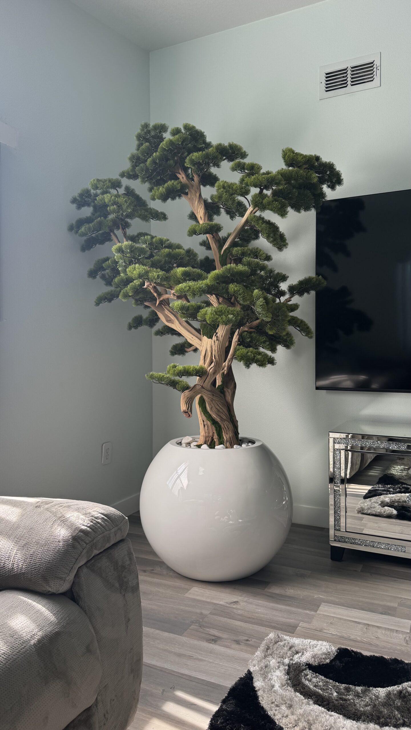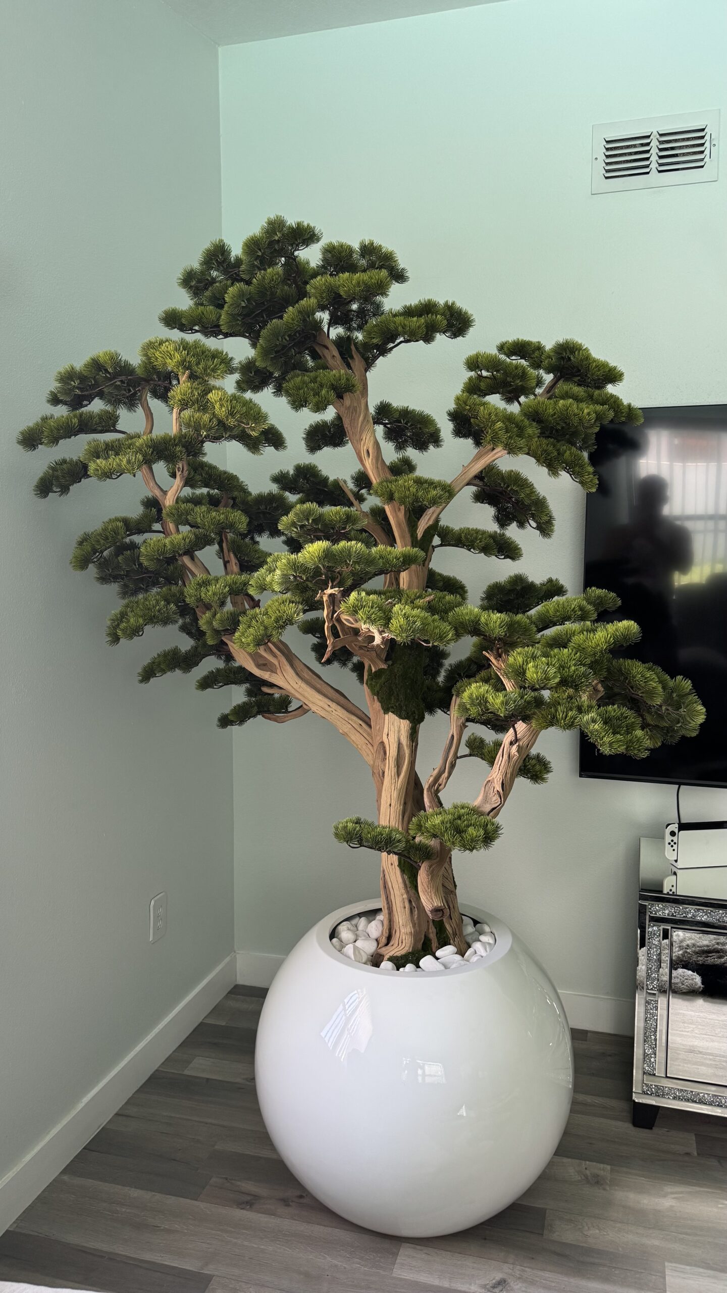 Bonsai “8 ft” on a round white planter